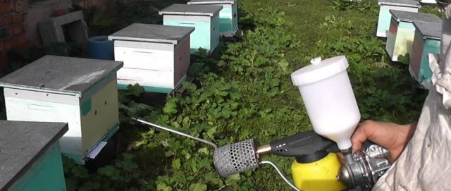 Las abejas se fumigan 45 días antes del primer bombeo de miel y también 7 días después de la última temporada de bombeo. Si hay cría de abejas en la colmena, se realizan 4 fumigaciones cada tres días. En otoño, las abejas se fumigan con un cañón de humo a una temperatura de + 2-8 sobreDESDE.