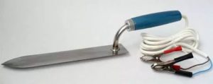 - Cuchillo eléctrico calentado. En una versión casera, las herramientas de apicultura suelen estar hechas de una trenza vieja. Hay modelos con calentador incorporado de 220 voltios y transformador reductor. Un cuchillo de apicultor eléctrico hecho de acero inoxidable se considera seguro para desempacar peines de 12 V, ya que un bajo voltaje seguro pasa a lo largo de la hoja.