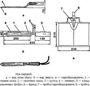 La cuchilla se fabrica de la misma manera que la contraparte eléctrica. Es mejor hacer un mango de madera. La madera es poco permeable al calor. El mango no se calentará por el vapor que pasa a través del tubo.