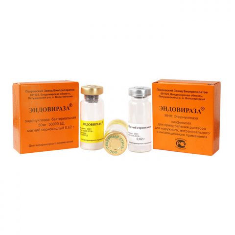 El principio activo de Endovirase es una enzima endonucleasa bacteriana. También hay sustancias auxiliares: poliglucina, sulfato de magnesio. En apariencia, el medicamento es un polvo blanco con un tinte amarillento.