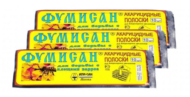 Las instrucciones de uso de "Fumisan" para abejas indican que la tira debe fijarse verticalmente, más cerca de la pared trasera de la colmena. La cantidad de tiras depende de la fuerza de la familia. Si es débil, tome 1 pieza. y cuélgalo entre 3 y 4 marcos. En una familia fuerte, debe tomar 2 tiras y colocarlas entre 3-4 y 7-8 cuadros.