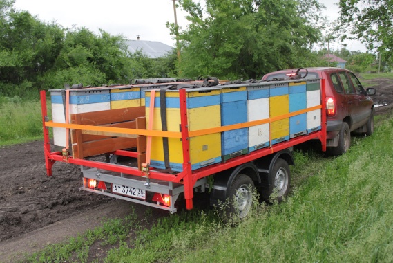 El transporte de abejas a larga distancia se realiza 2 veces al año o no se realiza en absoluto. Depende de la ubicación del colmenar. El colmenar se transporta no con el propósito de salir, sino para obtener más miel. Si el colmenar está bien ubicado, no necesita transporte.