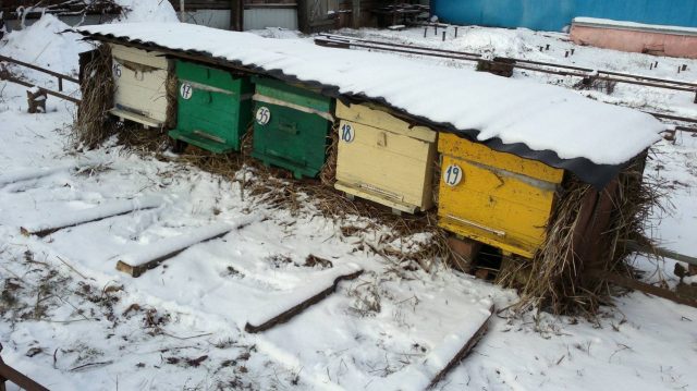 Las casas de abejas se instalan sobre pedestales para que no se inunden cuando la nieve se derrita. Si el colmenar es grande, las colmenas se colocan en una fila apretada para reducir el número de paredes arrastradas por el viento.