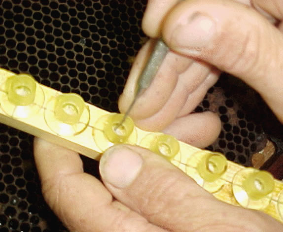 Cría de abejas reinas con transferencia de larvas.