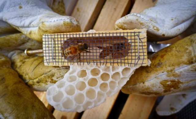 Al atardecer, cuando las abejas voladoras abandonan su hogar, las abejas reinas se plantan en la jaula. Se vierte agua en el panal vacío. Un día después, el licor madre se libera de la jaula, hasta el momento de la fertilización y la puesta de huevos, el enjambre no se puede tocar.