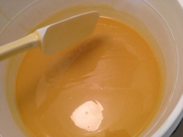 - La cúrcuma se mezcla con yema triturada y se agrega a la masa de cera.