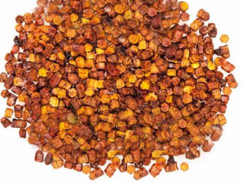 Perga es un producto en forma de pequeños gránulos, bastante agradable al paladar, con un característico aroma a miel ligeramente perceptible.