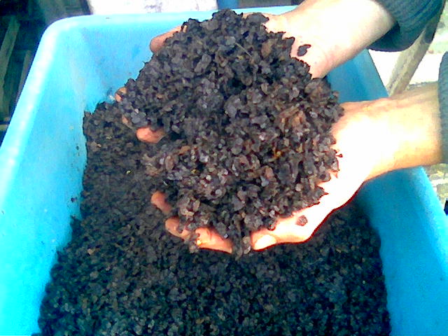 Este producto apícola es prácticamente desconocido para el público en general, ya que solo los apicultores lo encuentran. Se obtiene después de fundir el panal viejo y es una mezcla de cera, pan de abeja y restos de desechos de abejas. Es de color negro y se utiliza principalmente como materia prima para la producción de cera en la fábrica.