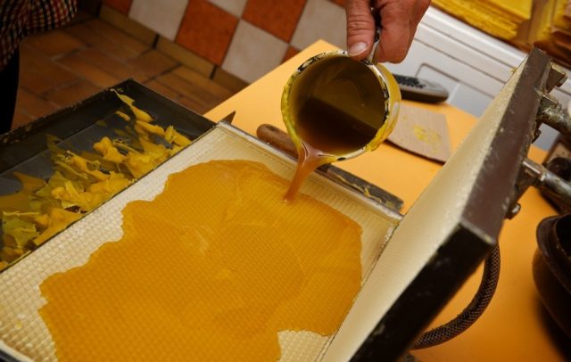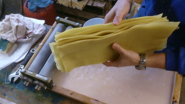 - Antes de colocar la hoja en el marco y colocarla en la colmena, se debe aplicar una fina capa de cera a la hoja, lo que requiere mucho tiempo.