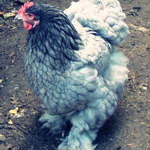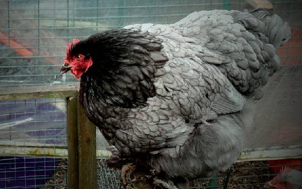 Hasta cierto punto, el color azul ya se puede llamar de dos tonos. La pluma en el cuello del pollo es más oscura que el color del cuerpo principal. El gallo tiene espalda, cuello y alas oscuros. El vientre, las piernas y el pecho son más ligeros.