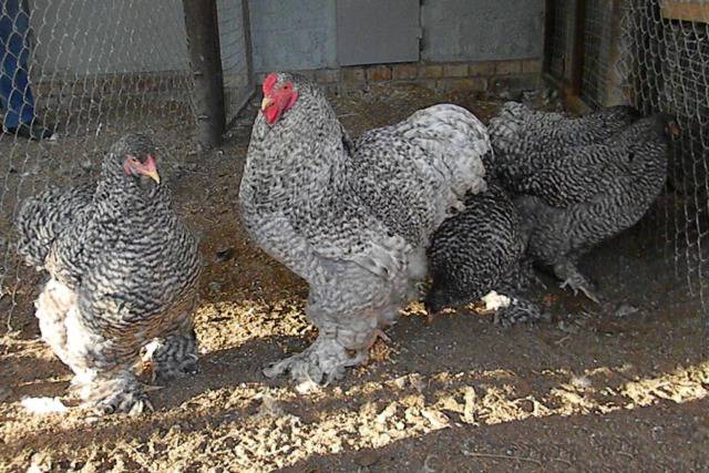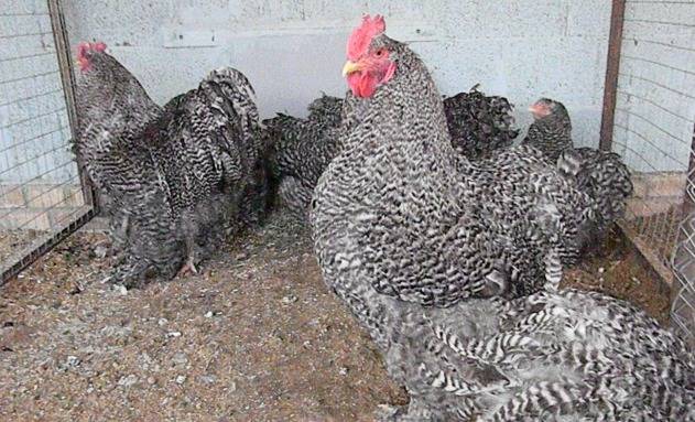 En ruso se llamarían pasteles. Aunque este color es el mismo en todo el cuerpo del pollo, cada pluma está bordeada por una franja oscura. Debido a la alternancia de rayas blancas y negras en la pluma, se crea la impresión general de un pollo abigarrado.