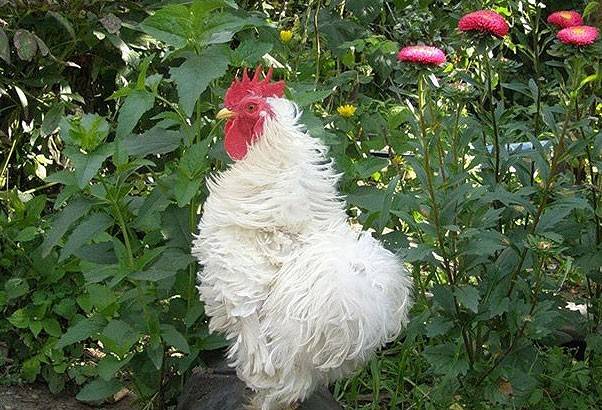 Gallo blanco rizado de un Cochinchin pigmeo.