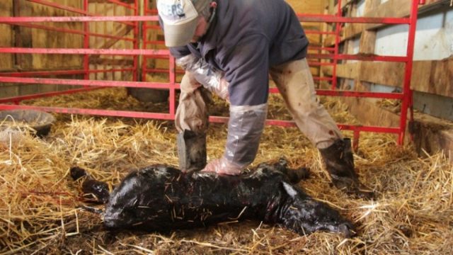 En el ganado, como en los caballos, el parto suele ser peligroso debido a las patas demasiado largas de los cachorros. Otras "posturas" también pueden afectar la apariencia de la asfixia: