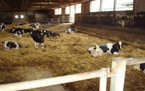 Características del alojamiento suelto de vacas en camas profundas.