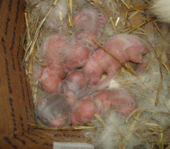 El conejo hará el nido por su cuenta. Firth dura aproximadamente un mes. No se requiere ayuda especial cuando se cuida al conejo. Sí, esto es imposible, dado el tamaño del conejo.