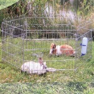 Si la salida de la jaula es más alta que el piso, debe estar desconcertado por una escalera segura para la entrada y salida del animal. Los conejos tienen patas muy frágiles. Si la pata cae entre las varillas y el animal se asusta y se contrae en este momento, se asegurará una fractura.