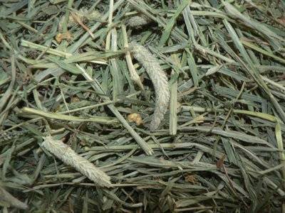 El heno no debe secarse demasiado, ya que en este caso las hojas y los pétalos, la parte más valiosa del heno, se desmoronarán y solo los tallos llegarán al conejo. Sin embargo, si las partes pequeñas se desmoronan en casa, se pueden mezclar con pienso seco y alimentar al animal.