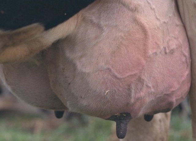 - con mastitis moderada, la ubre comienza a hincharse, endurecerse y enrojecerse, mientras que la vaca experimenta dolor;