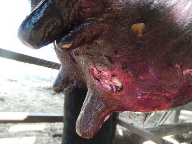 - se puede ver un absceso a simple vista: aparecen heridas purulentas.