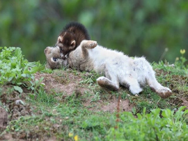 El hurón salvaje del bosque es intrépido y agresivo. Encontrarse con un gran depredador no lo detiene. Audazmente se lanza a la batalla.