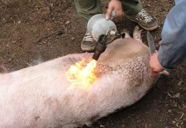 Cómo quemar correctamente a un cerdo con un soplete de gas