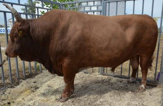 La foto muestra uno de los toros reproductores modernos de la raza Kalmyk.