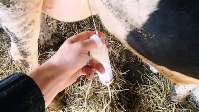 El catéter se puede usar para eliminar los bultos sueltos de las ubres de la vaca. Primero, se introduce una solución especial en el tanque, que aplasta las piedras, y luego, durante el ordeño, se exprimen cuidadosamente de los pezones con leche.