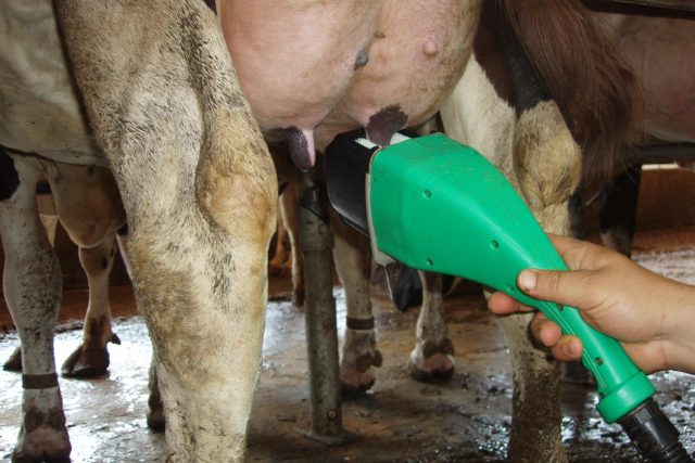 Una forma eficaz de tratar los cálculos de leche en una vaca es la ecografía. Primero, se prepara para el procedimiento: la ubre se lava y se afeita, se trata con una solución desinfectante y se recubre con glicerina. El dispositivo se conduce a lo largo de la ubre de una vaca, aumentando gradualmente la potencia de radiación y el tiempo de exposición. La manipulación se realiza a diario. Tardará de 2 a 10 sesiones, según el grado de la enfermedad. El ultrasonido permite que los medicamentos ingresen al cuerpo de la vaca más rápido.