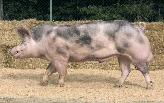 En la descripción de la raza de cerdo Pietrain, el surco característico que corre a lo largo de la cresta, el perfil recto de la cabeza y la grupa ancha también se indican como rasgos característicos. Pero no puedes verlo en la foto superior. Y el perfil recto no es visible en la parte inferior.