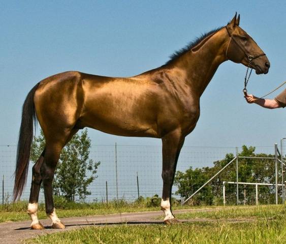 Tomó forma en Asia Central, pero se desconoce el momento exacto de su eliminación. Como los caballos árabes, fue utilizado por tribus nómadas en incursiones y guerras. Se diferencia del árabe en las líneas muy largas del cuerpo y el cuello. Muchos aficionados consideran que los caballos Akhal-Teke son la raza de caballos más hermosa. Y no amantes del "arenque". No hay camaradas para el gusto y el color, pero todos reconocen una cosa: los caballos Akhal-Teke tienen muchos colores interesantes.
