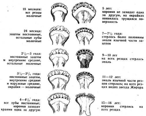 A la edad de 16 años, solo queda cáñamo amarillo delgado en lugar de los incisivos. A la edad de 17-18 años, los restos de los incisivos también se caen.