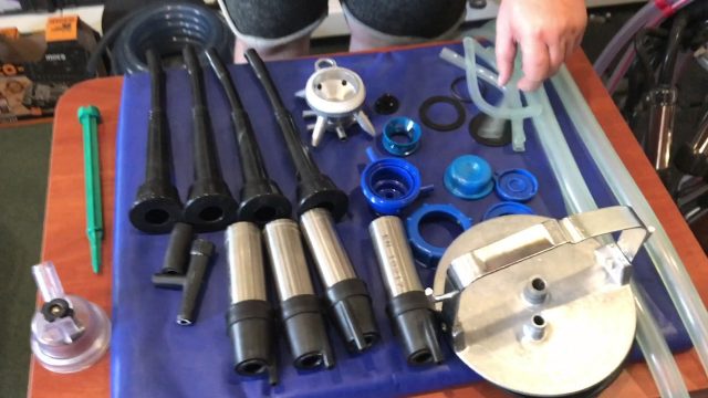 - Enjuagar... Las pezoneras se lavan en un balde con agua limpia tibia y se enciende la unidad. El líquido se bombea a una lata. Para cambiar el flujo de humedad, debe bajar y subir los elementos periódicamente.