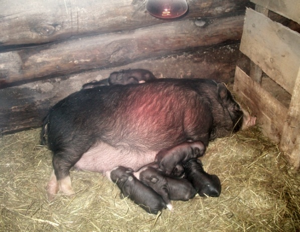 Los lechones recién nacidos con un cerdo se mantienen en una habitación con una temperatura del aire de + 25-30 ° C. Si se viola el régimen de temperatura, los lechones se congelan, comen mal y crecen y pueden morir.