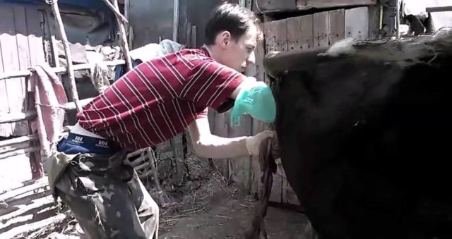 Luego, puede limpiar el área alrededor de la vaca de objetos innecesarios, enjuagar la habitación de suciedad y polvo. También debe enjuagar el órgano de la placenta usted mismo, habiendo preparado previamente un balde de agua con una solución de manganeso para esto. Debe lavarse con cuidado, evitando lesiones innecesarias.