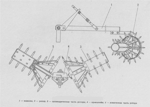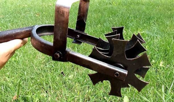 Siempre hacen un par de erizos cónicos, sujetándolos con un soporte de metal en un ángulo de 45sobre, en relación con los demás. Si le da papas a la marihuana con erizos, tendrá que fijarlas a un mango largo. Durante la rotación, la estructura cónica agarra el suelo con espinas, formando una cresta en el jardín.