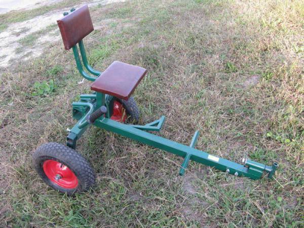 Caminar detrás de un tractor a pie por un campo grande es muy agotador. Los propietarios ingeniosos de motobloques mejoran las excavadoras de papas para que puedan sentarse sobre ellas. Para hacer esto, haga un marco alargado, y al perfil del bastidor se sueldan con puentes, que forman el asiento. Por supuesto, será más conveniente apoyarse en la espalda, pero puede prescindir de él.