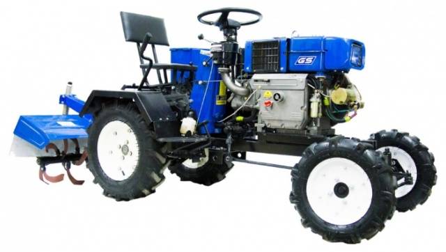 Debido a su tamaño compacto, el mini tractor es utilizado por propietarios privados y pequeños agricultores. El modelo se caracteriza por la simplicidad de control y versatilidad, que se logra mediante el uso de accesorios. La unidad está equipada con un motor de 12 hp. desde. La banda de rodadura de los neumáticos liviana y especialmente diseñada permite que el tractor se mueva sobre el césped sin dañarlo. El costo del modelo oscila entre 100 mil rublos.