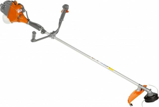 Para una residencia de verano o un área suburbana, la recortadora Al-Ko será una buena opción. El modelo 112387 FRS 4125 se considera una opción económica. La desbrozadora funciona con un motor de dos tiempos de 1,2 caballos de fuerza. La velocidad de rotación máxima de la boquilla de trabajo es de 6.5 mil rpm. Capacidad del depósito de combustible - 0,7 l. Peso de la recortadora - 7 kg. La siega se realiza con un cuchillo o hilo de acero de tres pétalos.