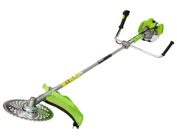 La desbrozadora china Grunhelm está equipada con un motor de dos tiempos de 3,5 kW. La velocidad de rotación máxima de la boquilla de trabajo es de 8 mil rpm. El volumen del tanque de combustible está diseñado para 1,2 litros de gasolina. La potente desbrozadora Grunhelm es una excelente opción para los propietarios de grandes áreas suburbanas. El cuchillo circular de acero se encargará fácilmente de cortar cañas, densos matorrales de malas hierbas y arbustos jóvenes. El motor está equipado con refrigeración por aire forzado. Debido a esto, la recortadora puede funcionar durante mucho tiempo.