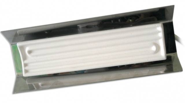 El diseño del elemento calefactor se asemeja a los elementos calefactores ya discutidos hechos de tungsteno y fibra de carbono. La única diferencia es que la bobina del elemento calefactor no está encerrada en un vidrio, sino en un tubo de aluminio. En los calentadores de infrarrojos, generalmente se instalan varios elementos de calentamiento en una placa de aluminio con una temperatura de calentamiento máxima de 300sobreC. El diseño del calentador sobre elementos calefactores se considera duradero. El único inconveniente es el débil crujido del elemento cuando se calienta.