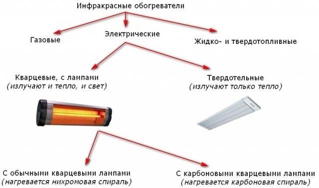 Todos los calentadores de infrarrojos funcionan con un determinado portador de energía, que los divide en grupos separados: