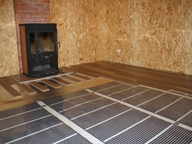 La película sirve como fuente de radiación IR. Se coloca directamente debajo del revestimiento del piso. Para que el calor irradiado se dirija solo hacia la habitación, se coloca un aislante térmico debajo de la película: un isolón. El termostato controla el funcionamiento de la película. Resulta una especie de sistema de "suelo cálido", ignífugo y muy rentable para las casas de veraneo.