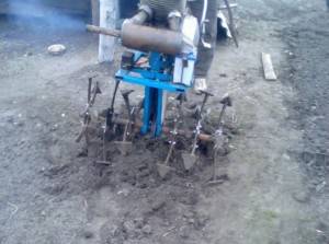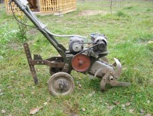 Los vehículos autopropulsados son difíciles de fabricar. Incluso se pueden instalar 2 cajas de cambios aquí. Uno de ellos está usando la autopista. Es necesario girar la boquilla giratoria, lo que afloja la tierra. Con la ayuda de la segunda caja de cambios, las ruedas motrices se ponen en movimiento.