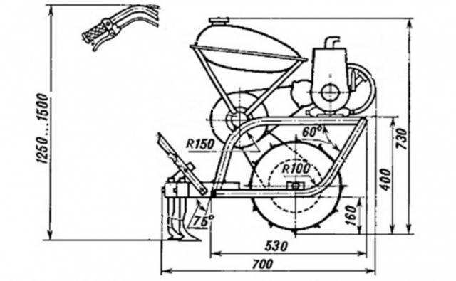 Para ensamblar un cultivador usted mismo, necesitará dibujos de todos los nodos. En la foto se muestra un ejemplo de un diagrama con dimensiones. Puedes buscar otros dibujos de cultivadores o desarrollarlos tú mismo.
