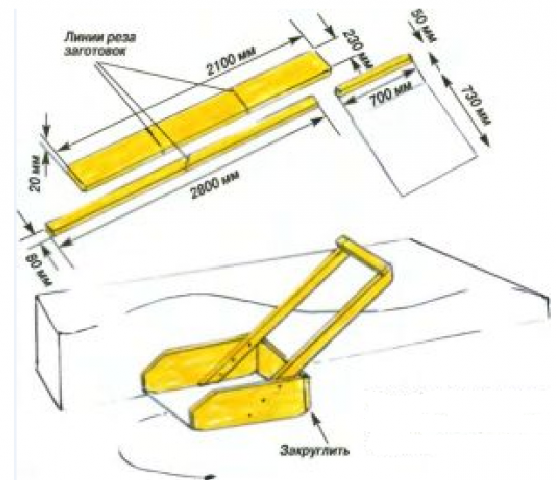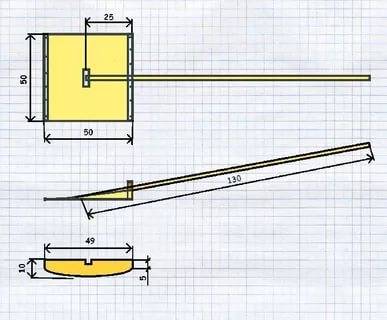 En la foto se puede ver un ejemplo de un esquema mediante el cual puede hacer una pala de madera. Este proyecto tiene una pequeña mejora. La parte inferior del portón trasero es semicircular. Esto permite una cómoda forma de pala curva.