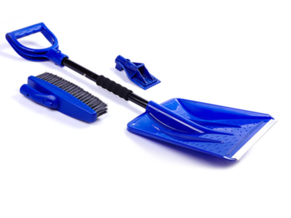 Puede encontrar una herramienta tan interesante en una tienda o hacerla usted mismo. Un raspador con un cepillo le permite limpiar la nieve de las losas del pavimento. En la versión tienda, puede ser una pala de plástico con un cepillo extraíble. El diseño casero es un raspador de cualquier configuración. Simplemente coloque un cepillo de cerdas rígidas en la parte posterior de la hoja o pala. Durante el funcionamiento, barrerá la nieve restante, que luego se puede quitar fácilmente con una pala.