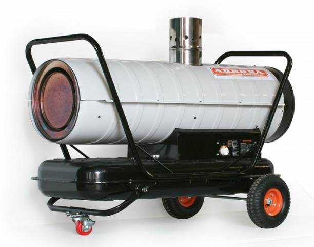 Sin embargo, durante la combustión, el combustible diesel emite humo cáustico que, junto con el calor, expulsa el ventilador hacia la misma habitación climatizada. Por este motivo, los modelos de calefacción directa se utilizan en áreas abiertas o semiabiertas, así como donde no hay personas. Por lo general, los motores diésel de calentamiento directo se utilizan en los sitios de construcción para secar la habitación, de modo que el yeso o la regla de concreto se endurezcan más rápido. Un cañón es útil para un garaje, donde puede calentar el motor de un automóvil en invierno.