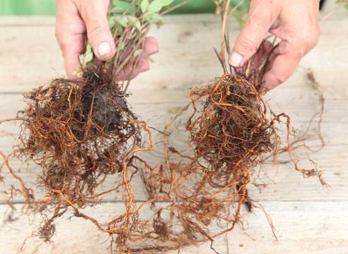 - Dividiendo un arbusto cubierto de maleza... Hay dos formas aquí. Primero: desnudar las raíces del arbusto y cortar el brote con raíces. Segundo: desenterrar todo el arbusto de madreselva y, con una pala, dividir el arbusto en partes, que luego se pueden trasplantar a nuevos lugares permanentes. Trate las secciones con ceniza. Y acorta ligeramente los brotes. Después de un año, la planta necesitará poda para formar la corona.