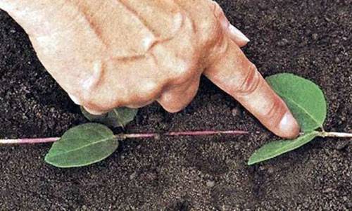 - Capas... La forma más fácil de criar madreselva es madreselva. En primavera u otoño, doble la rama al suelo y asegúrela con grapas. Espolvorear con tierra. Para un enraizamiento efectivo, prepare el suelo mezclándolo con turba. En la primavera, separe las partes enraizadas del arbusto madreselva madre y plante en un lugar permanente. Este método es bueno al crear un seto, luego las capas no se separan, continúan creciendo por sí solas.Solo es necesario instalar un soporte para plantas jóvenes.