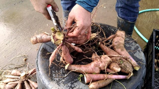A principios de mayo, antes del inicio de la fase de crecimiento activo, se pueden dividir los cultivos de huertos tuberosos (aster, helenio, lychnis, equinácea, dalias).